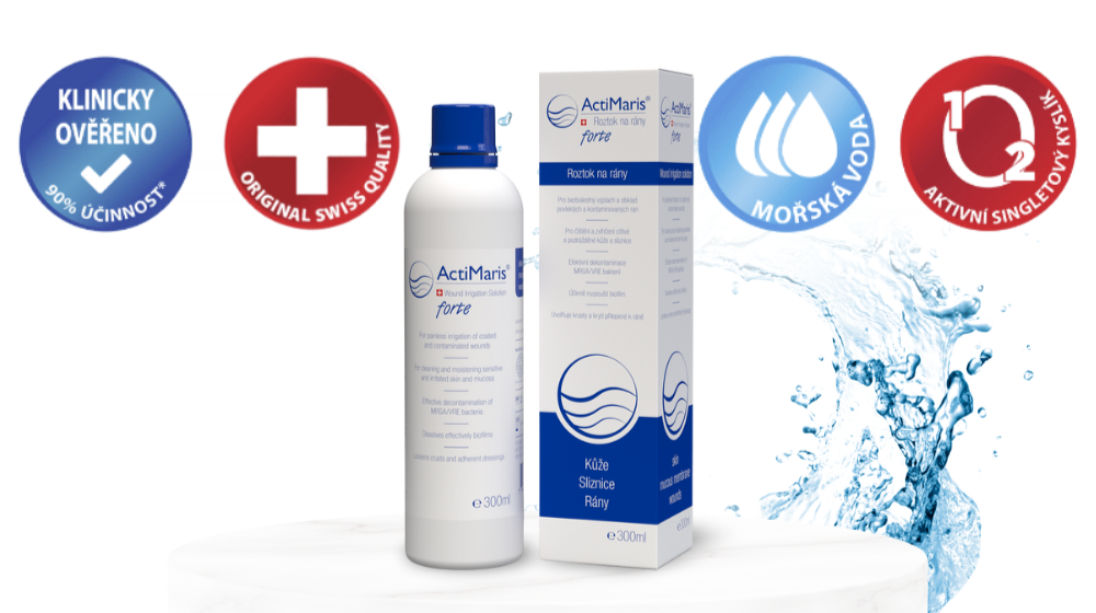 Rychle ránu vyčistí, sníží zánět a nastartuje hojení. ActiMaris Forte roztok je obzvláště vhodný na urychlení hojení chronických, špatně se hojících ran, bércových vředů, infekčních ran, proleženin apod. Výborně se také osvědčil při čištění kůže u těžších forem akné. Dokáže rychle eliminovat bakteriální a plísňové infekce jak na kůži, tak i na sliznici (dutina ústní, genitálie).