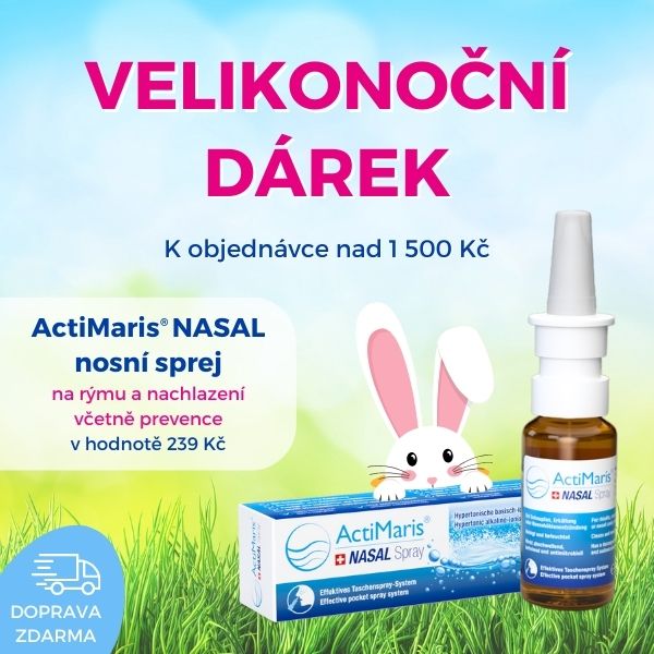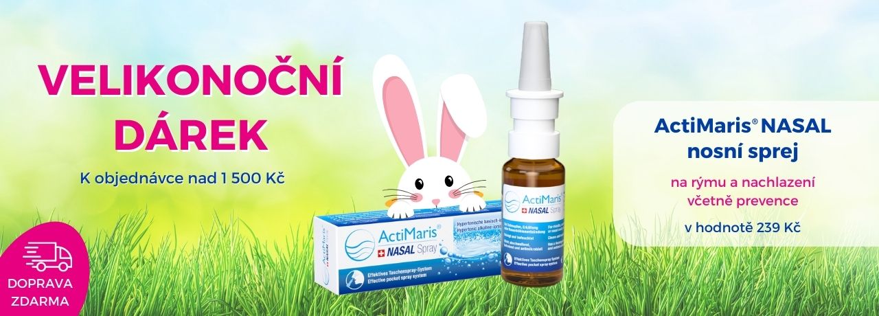 V případě, že máte v košíku produkty za více jak 1500 Kč, objeví se Vám automaticky v pokladně (v pravém sloupci) velikonoční dárek – ActiMaris® NASAL nosní sprej.